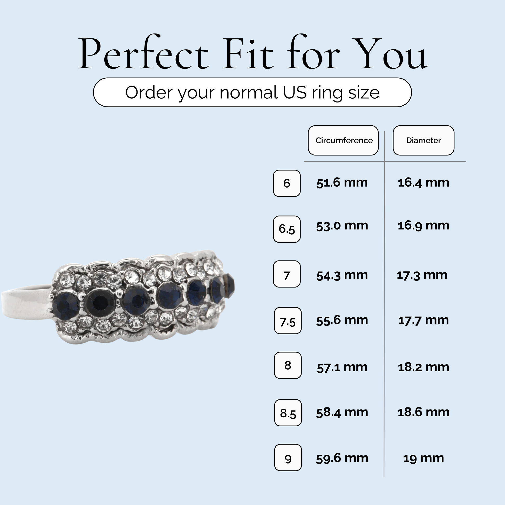 We suggest using our printable ring sizer to determine your ring size!